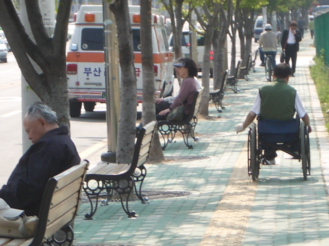 휠체어는 지금 운동 중입니다. 아마 팔다리가 다 부실해서 저렇게
