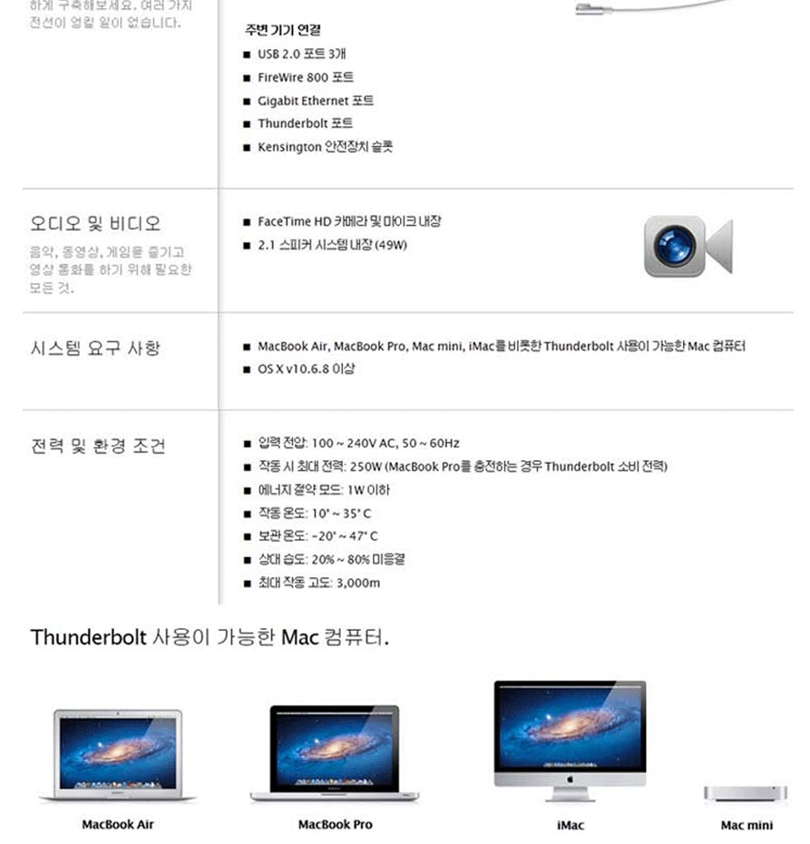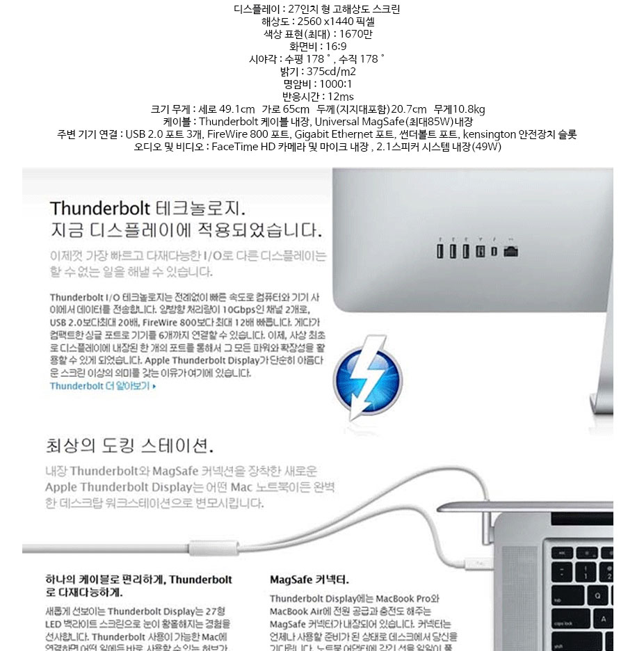 튼튼한 강화유리가 앞에 붙어있는 27인치 썬더볼트 디스플레이입니다