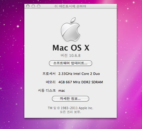 4기가 램 250기가 하드...170기가는 맥프로그램 셋팅...80기가는