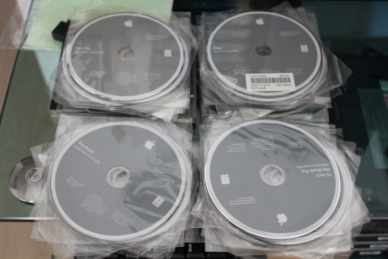 렌탈장비에서 나온 맥북, 맥북프로, 아이맥, 맥프로용 번들 복구 DVD 62장 입니다. 대부분이 10.6시리즈 버전이고 10.5시리즈 버전은 몇개 없습니다.
