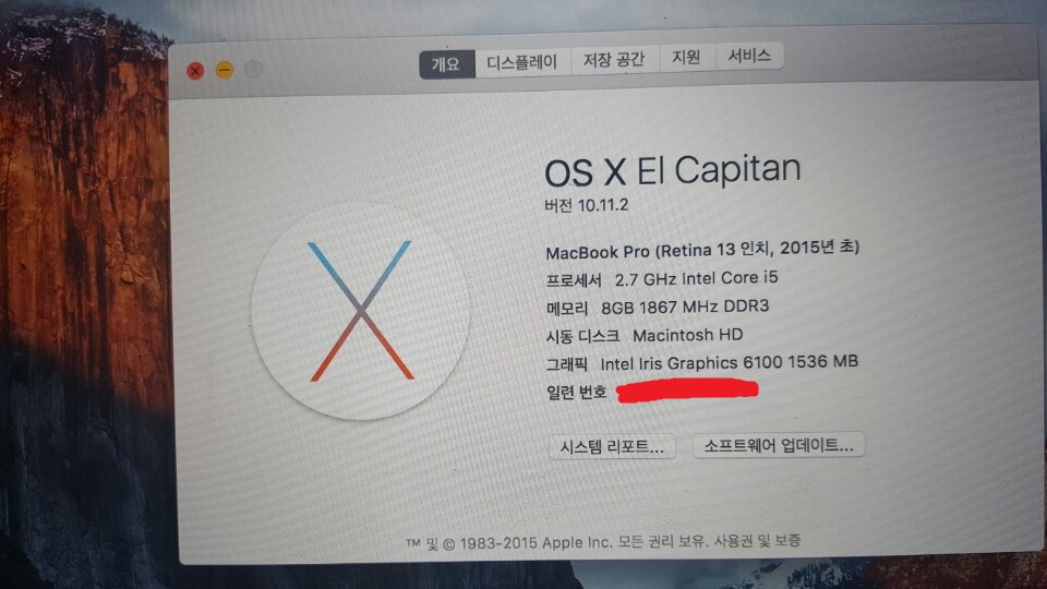 1. 물품명 : 2015 early 맥북 프로 레티나 13인치 중급형