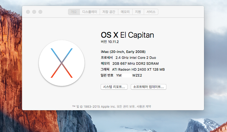 최신os인 엘캐피탄 설치됨