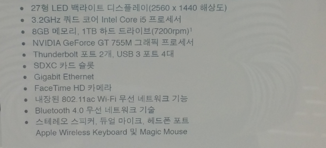 아이맥 27인치 팝니다.(거의새거내용참조)