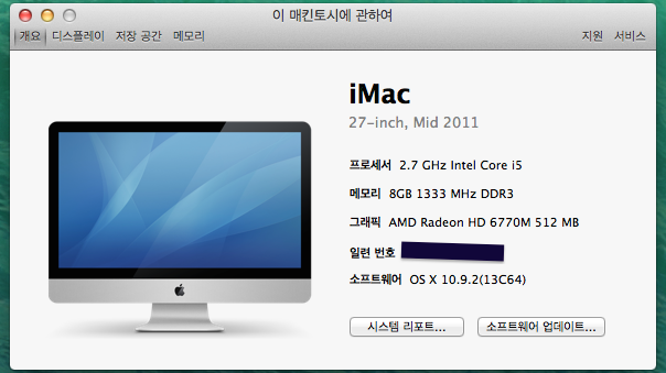 아이맥(iMac) 27" Mid 2011 2.7GHz i5 8G 2T + Windows7 포함