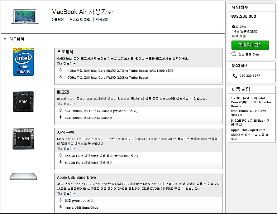 현재 판매되고 있는 맥북에어 최고사양과 동일제품이지만,