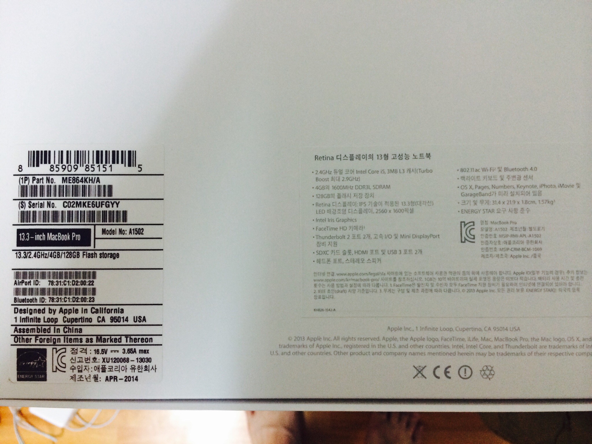 맥북 프로 레티나 13인치 14년 기본형 팝니다.