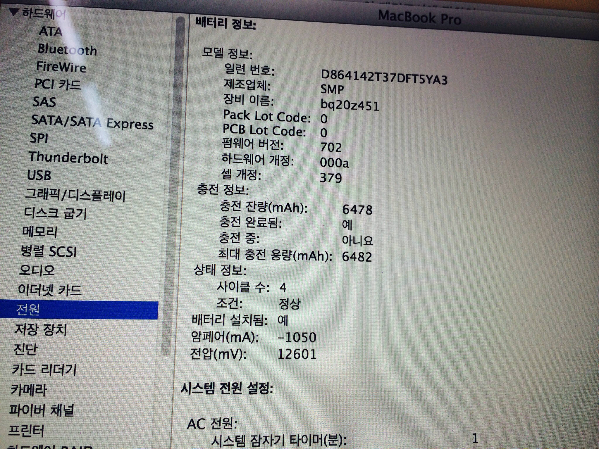 실사용은 5회 미만이며 배터리 사이클 4번 입니다.