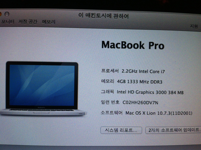 12년 4월 구입 15인치 맥북프로 무반사 고해상도