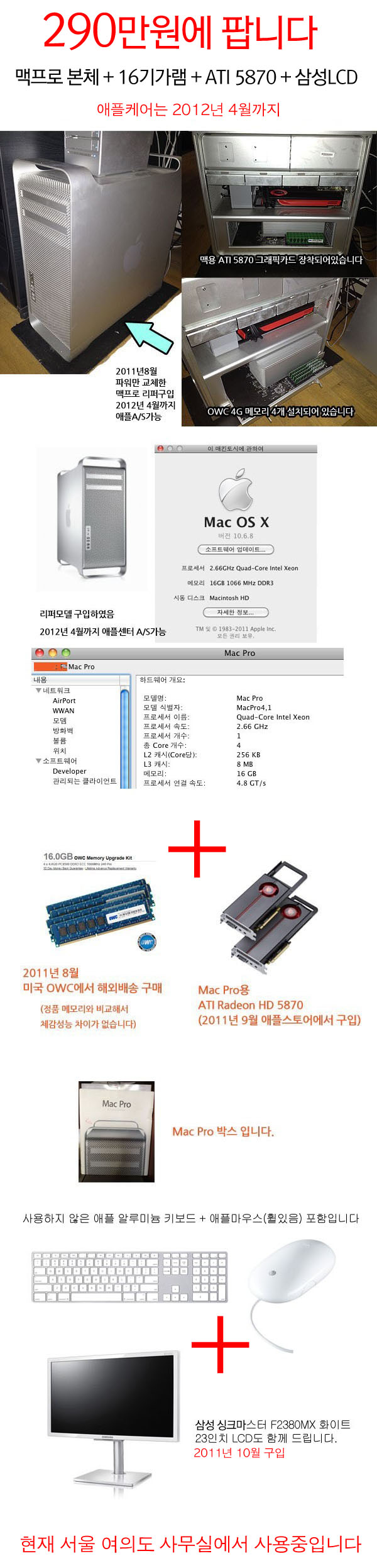 맥프로(2009) 2.66 쿼드코어 + 16기가 메모리 + 맥용 ATI 5870 1G + 모니터F2380MX