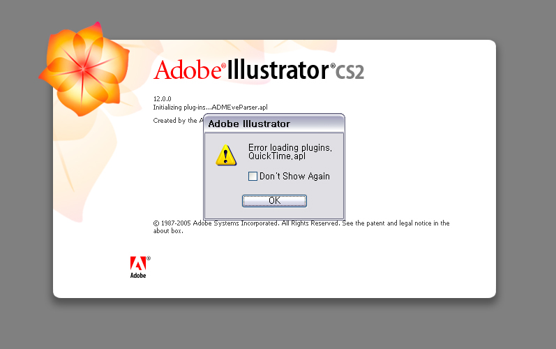 퀵타임 지우고, 일러스트cs2 열었더니 -> 첨부파일 에러메시지 나옴