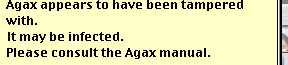 지금 메시지는 Agax 프로그램 자체가 이미 바이러스에 감염되어 실행을 할 수 없다는 메시지입니다.