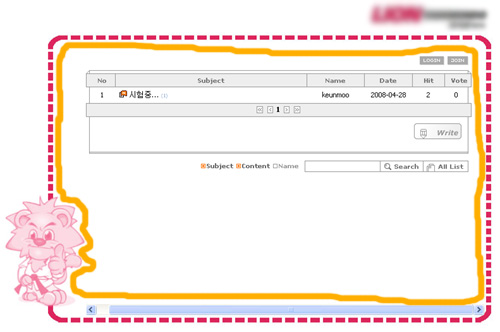 요위 사진에 점선안쪽으로 게시판을 넣으려하는데