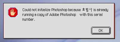 랜으로 연결된 다른 컴퓨터에서 같은 시리얼의 포토샵이 실행되고 있어서
