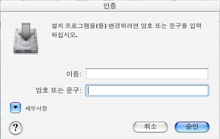 OS X에서 프로그램을 인스톨 하려는데 아래와 같이 인증을 위한 비밀번호를 치라는데