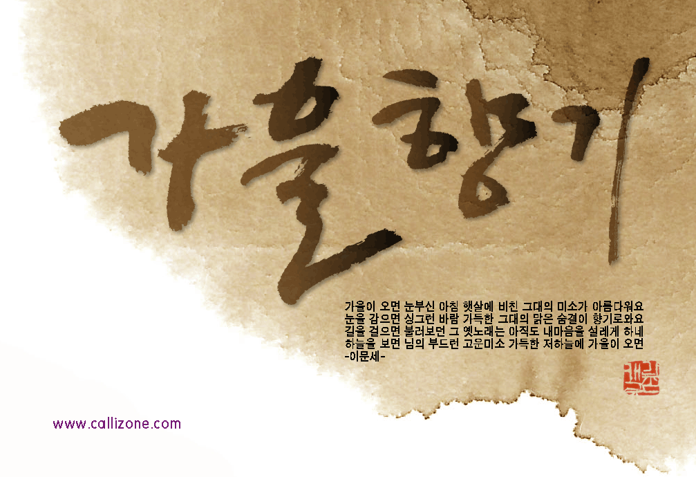 [직접쓴 캘리} 가을향기 callizone 일반 1 9343 2007.10.02 14:07 http://www.callizone.com/home/index.php + 563 가을이 익어가고 있습니다. 가을을 음미하면서 한번 만들어 보았습니다. 회원님들 감기조심 하세요^^