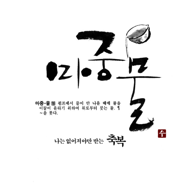 예인님 저도 캘리 부탁드려도 될까요? zenith 일반 0 5692 2009.05.11 23:19 매번 보기만 하다가 용기내서 초면에 부탁드립니다. 지역에 조그만 어머니 모임 명함에 들어갈 로고체구요 작지만 의미있는 모임이라 이쁘게 만들어 드리고 싶어서요. "마중맘"이라고 써주시면 될것 같습니다 마중물이란 순우리말에서 만드셨다고 하네요 샘플 하나 올려드리겠습니다 부탁드립니다