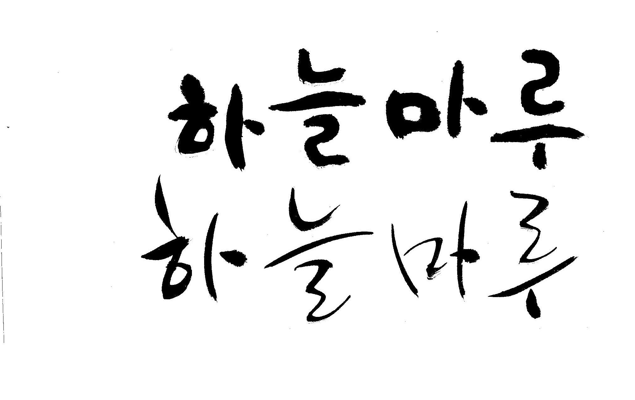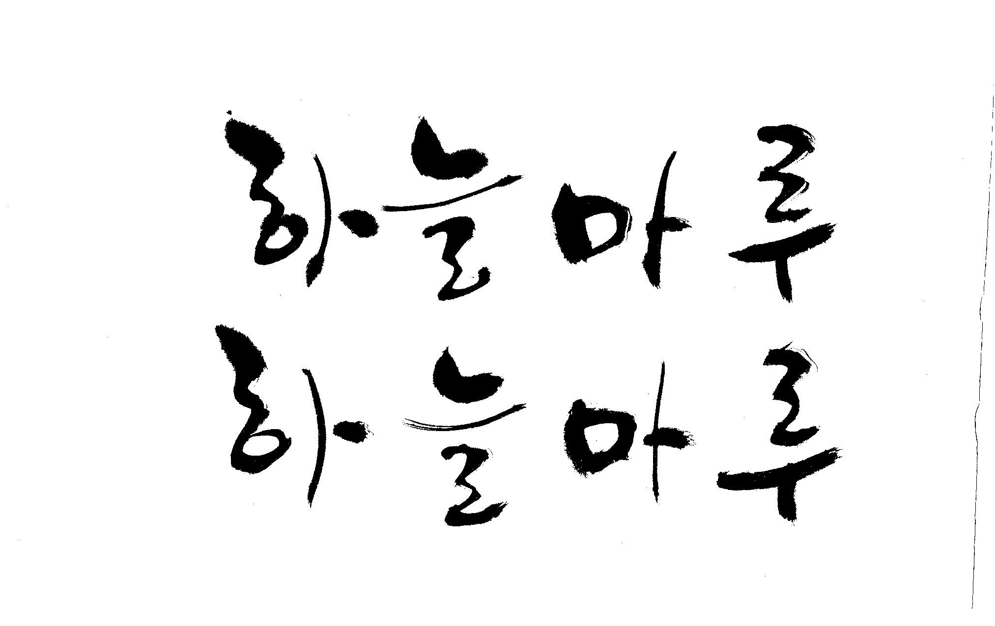 캘리 좀 부탁드립니다. 김철호 일반 0 8886 2009.02.16 23:14 > > "하늘마루" 라는 이름인데, 노인복지시설에서 발행하는 소식지 제목입니다. > 기존 서체와는 다른 고유한 이름을 정하고 싶어 이렇게 부탁드립니다. >