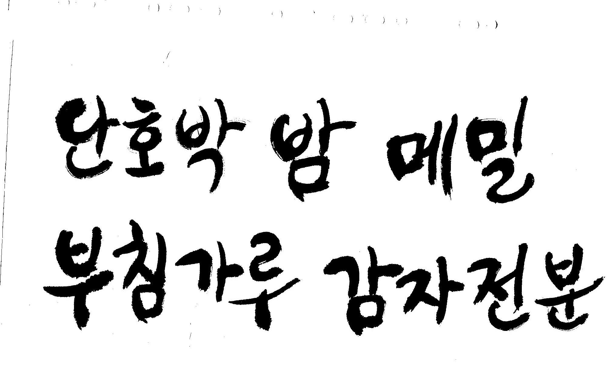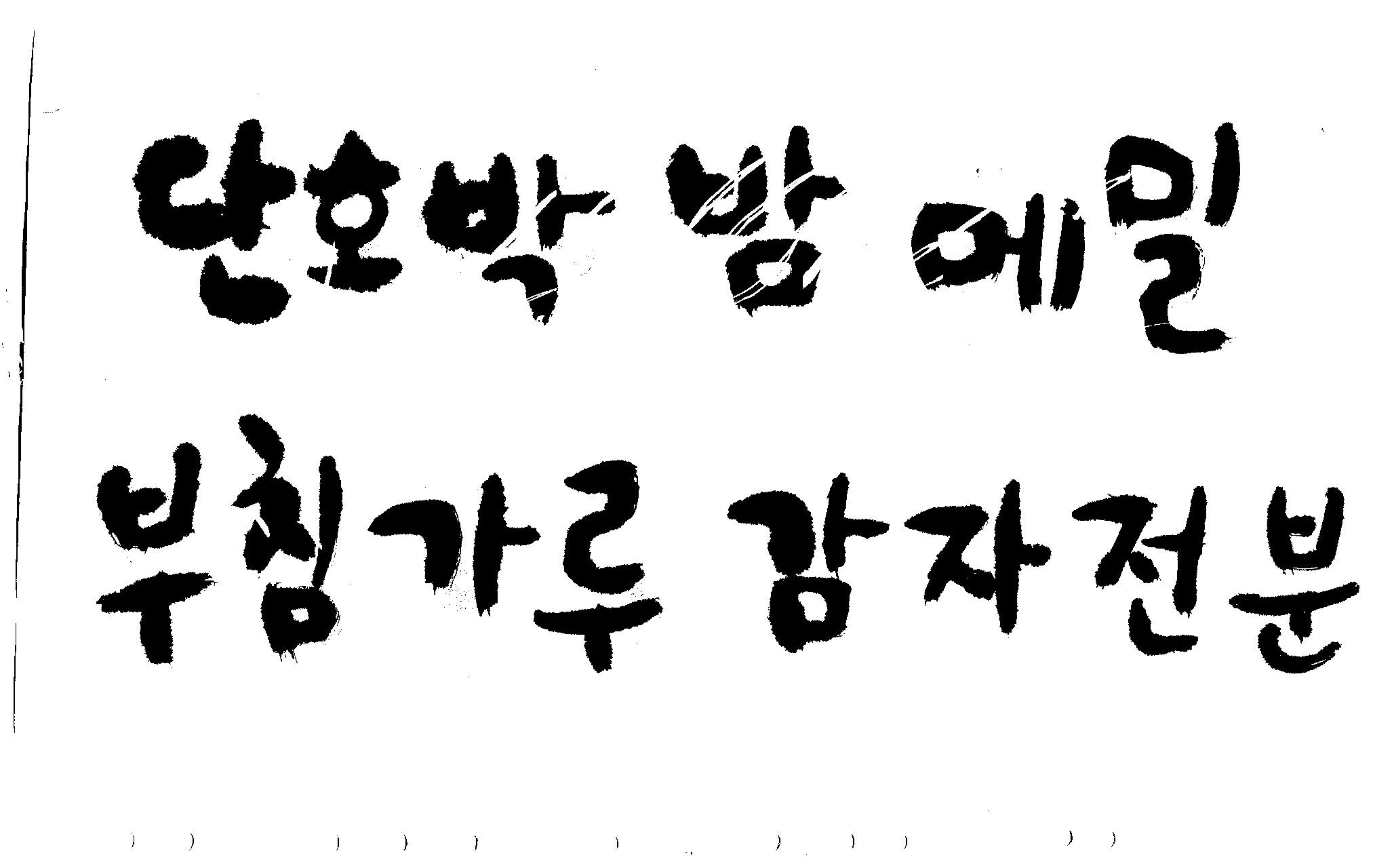 반갑습니다.~캘리 부탁드릴께요~ 김철호 일반 0 6243 2009.02.13 01:00 > > 안녕하세요~ 철호님~ > 항상 좋은자료~ 감사합니다. > 이번에 또 몇가지 부탁드려도 될지 모르겠어요~ > 내용은 단호박,밤,메밀,부침가루 감자전분,감자가루 입니다. > 좀 많죠~^^;; > 식품포장지쪽으로 들어갈 내용입니다. > 항상 부탁만 드리네요~ > 참 전에 올려주신건 곧 제품으로 나올 예정이예요~ > 나오면 찍어서 보내드릴께요~ > 항상 감사합니다.^^ >