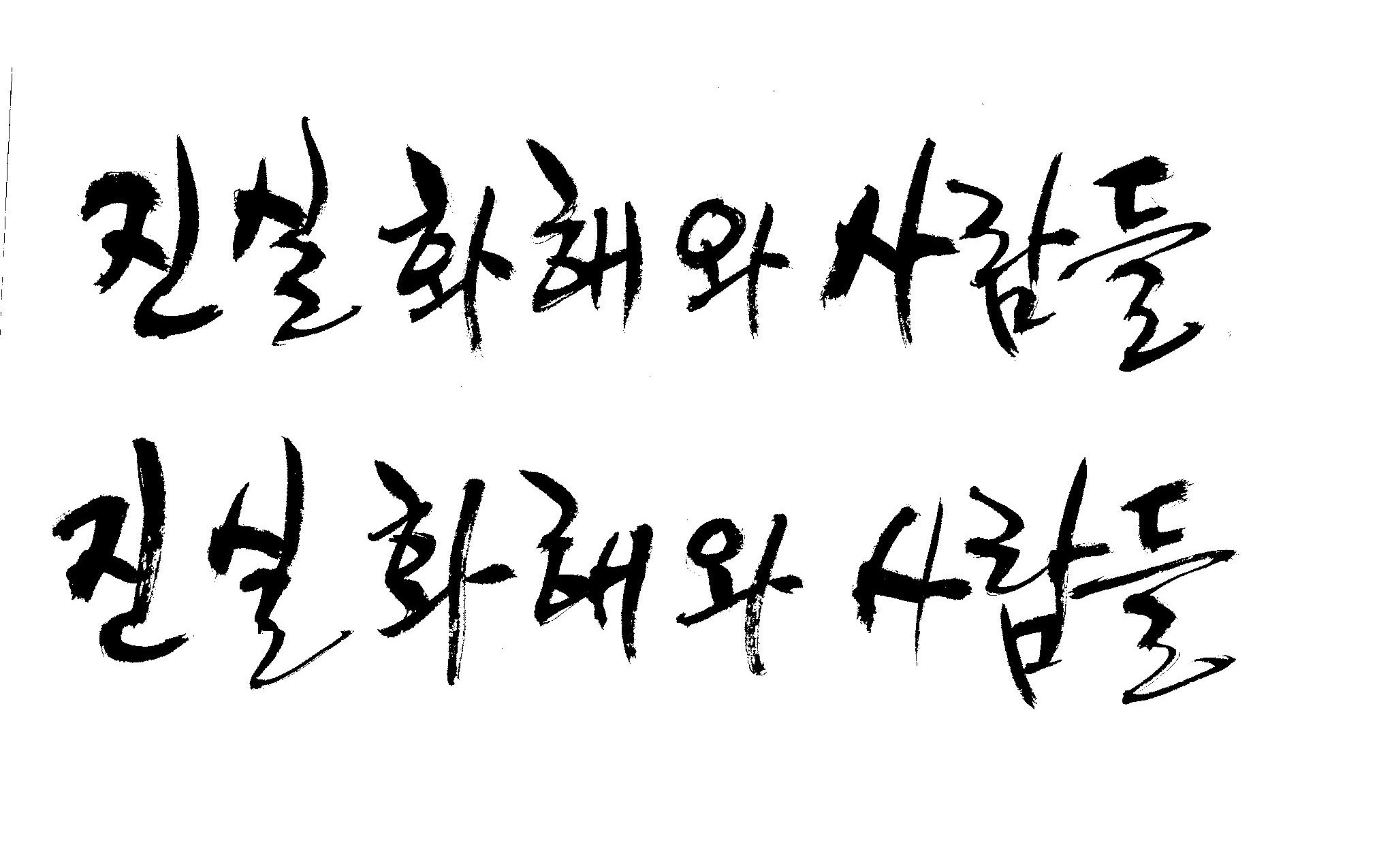 진실화해 와 사람들 캘리 부탁드립니당^^ 김철호 일반 1 8367 2009.01.30 09:50 > > 사보시안에 표지 메인 글짜로 쓸려고 하는데. > > 꼭 좀 부탁드려용^^ > > "진실화해 와 사람들" > > 바쁘신데 이렇게 부탁 드려서 죄송하고요 > > 새해 복 많이 받으세요! > > 감사합니다. >