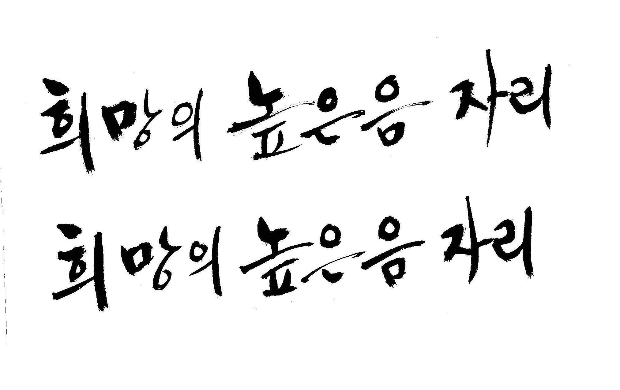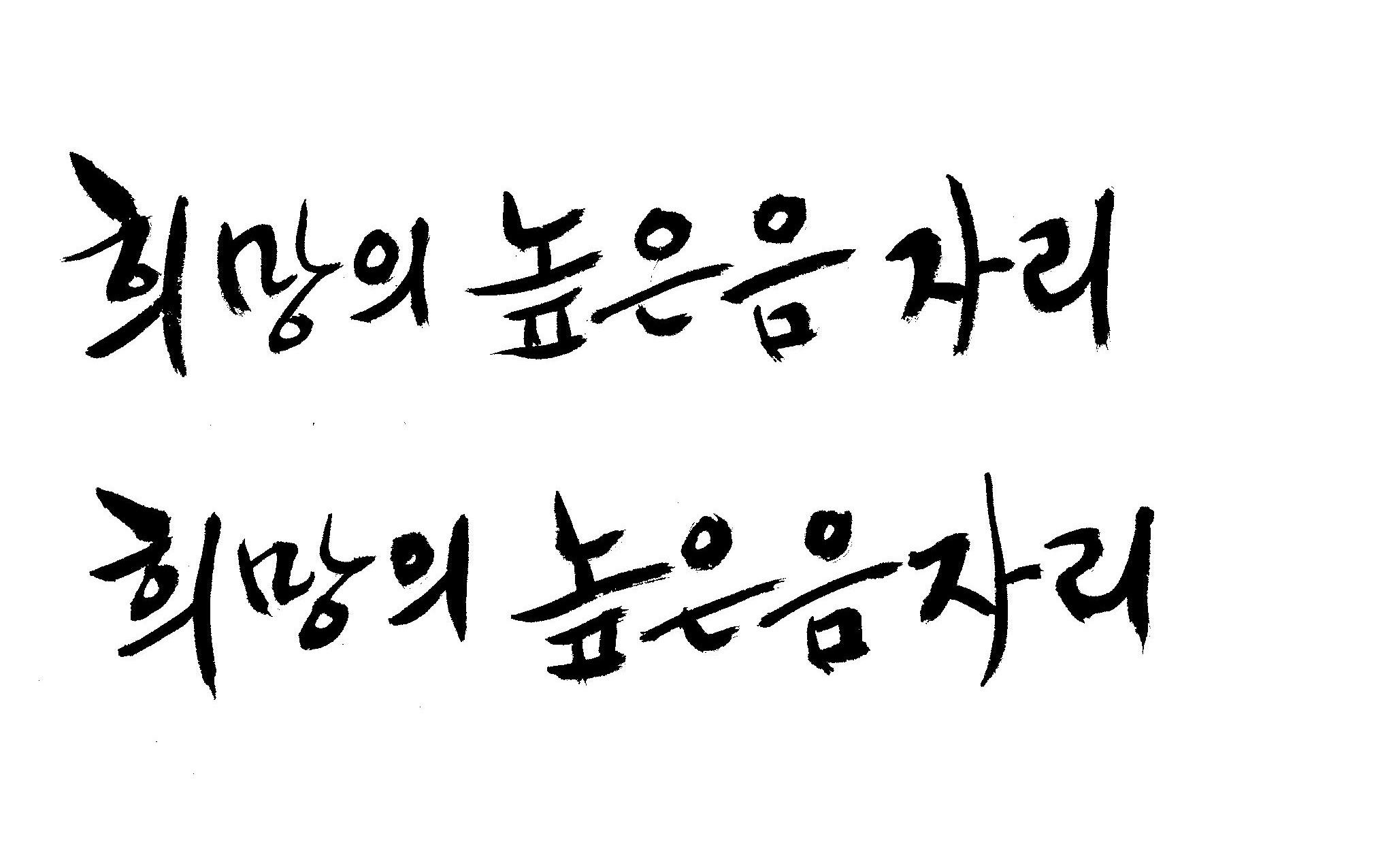 저도 캘리좀부탁이요 ^^;; 김철호 일반 0 6454 2009.01.14 10:59 > > 희망의 높은음자리 > > 감사합니다 ^^ 꼭부탁드려욧 ㅎㅎㅎ > 좋은 글이라서 신경썼는데 만족할 만큼 않나왔네요.. 유용하게 쓰시길...