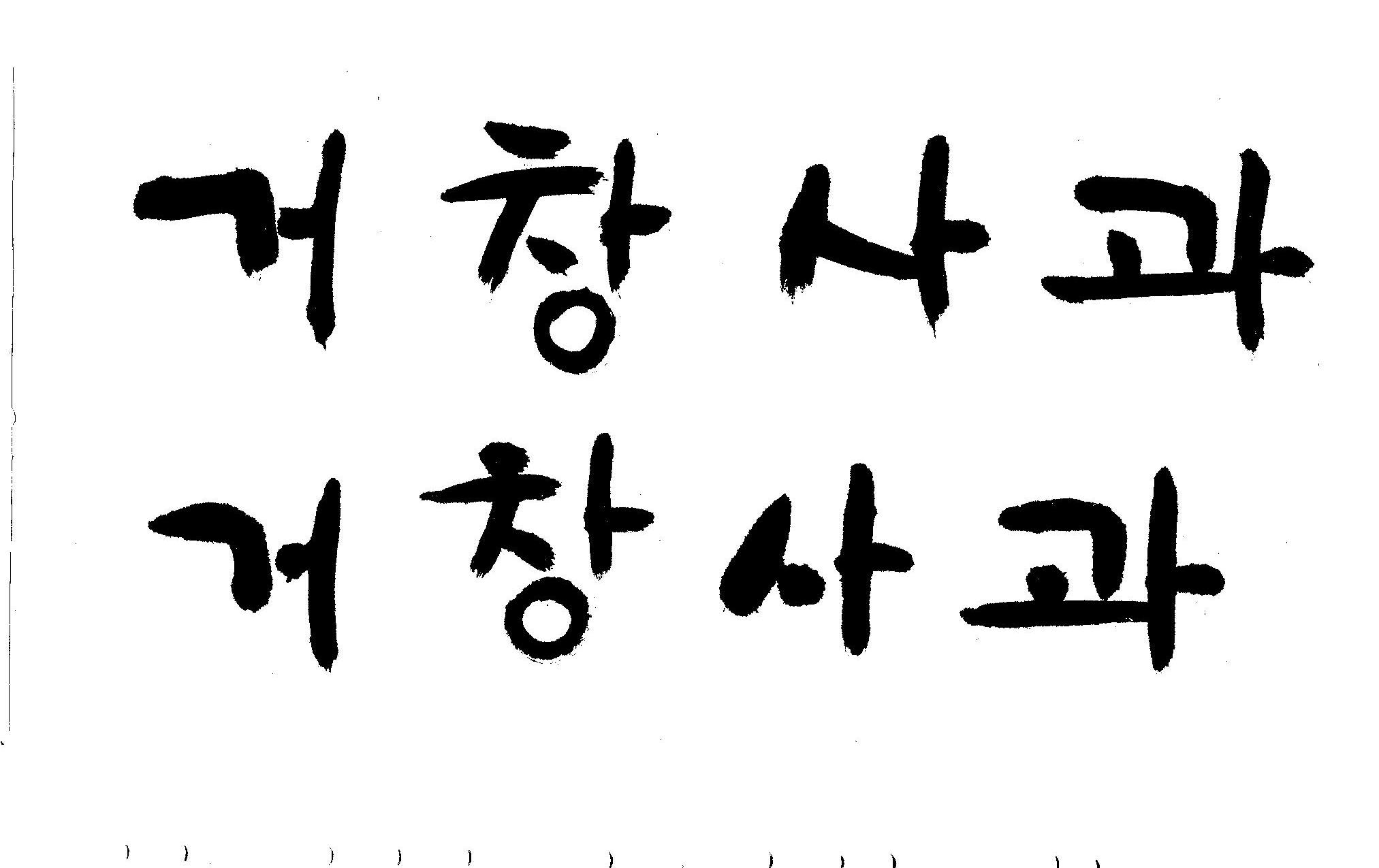 캘리 부탁드립니다. 김철호 일반 0 10244 2008.12.29 16:02 > > 안녕하세요? > 전문대 졸업하고 편집일 하다가 > 얼마전에 패키지쪽으로 이직했습니다. > '거창사과'라고 박스 디자인 주문이 왔는데요 > 일반적인 서체를 사용하니 기존 박스랑 별 차이가 없네요 > 많이 바쁘시겠지만 '거창사과' 캘리 부탁드립니다. > 유용하게 쓰시길..