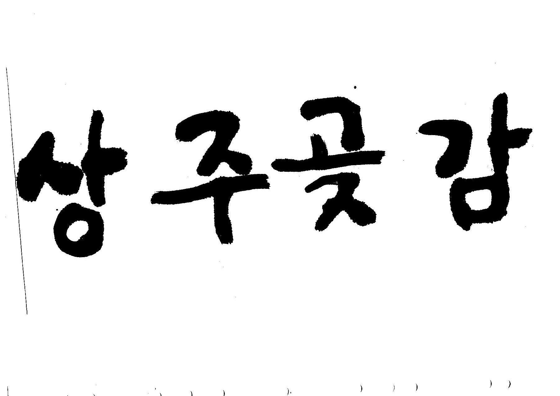 > 이글은 맛난 느낌도 좋겠지만,  상주농민의 순수하고 진정성 있는 정성이 담긴 우리의 좋은 먹거리라는, 우직한 느낌으로 썼습니다...생각이 그렇다는 말이죠  ㅋㅋㅋ..글에는 이런 뜻이 담겼는지는 보는분 알아서 평가하십시요..완성도가 떨어져서 아쉽지만 그래도 유용하게쓰시길 ..편집하실때 "상"자의 "ㅅ"부분 오른쪽 점획이 먹이 많이번져 있기 때문에 약간 작게 수정을 하시면 좋을것 같네요, 원본은 스캔을 위해 글간 간격을 무시한는 경우가 많습니다 알아서 편집하시길..