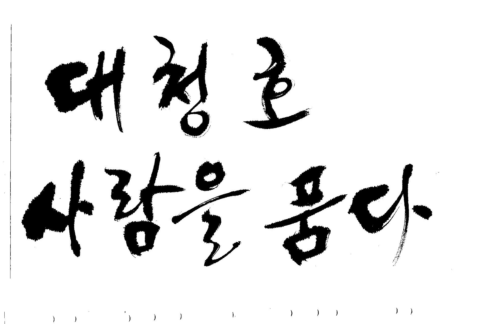 캘리 부탁드려요 김철호 일반 0 7045 2009.06.03 12:12 > > 대청호 > 사람을 품다 > > - 방송용 다큐멘터리에 들어갈겁니다 > 죄송합니다만 빨리 부탁드려요 > 두줄로 가운데 맞춤으로 써주세요 - > 줄맞춤은 알아서...